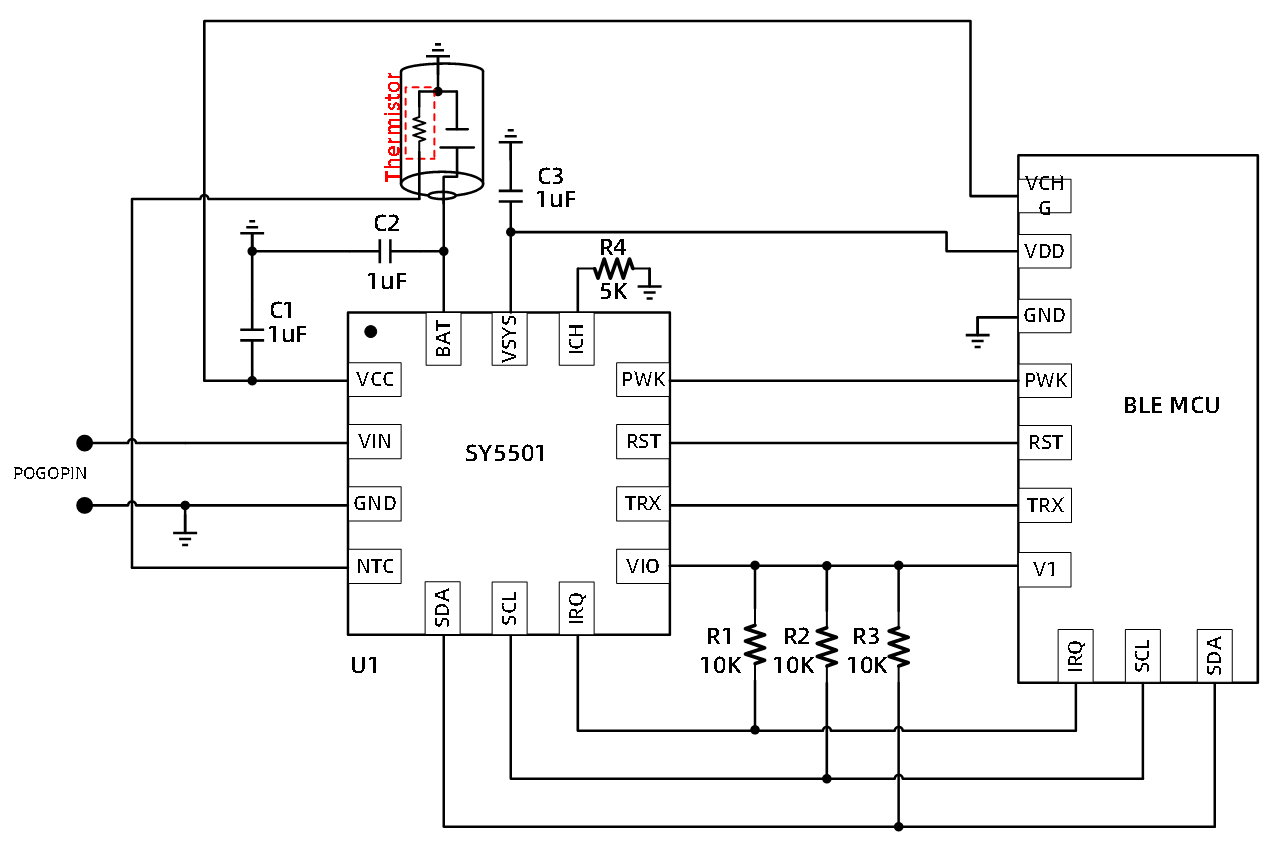 realizing the operations of power on/off and resetting the earbuds. SY5501 also supports the intelligent recognition of earbuds in cradle/out of cradle status, and actively informs the earbuds MCU.