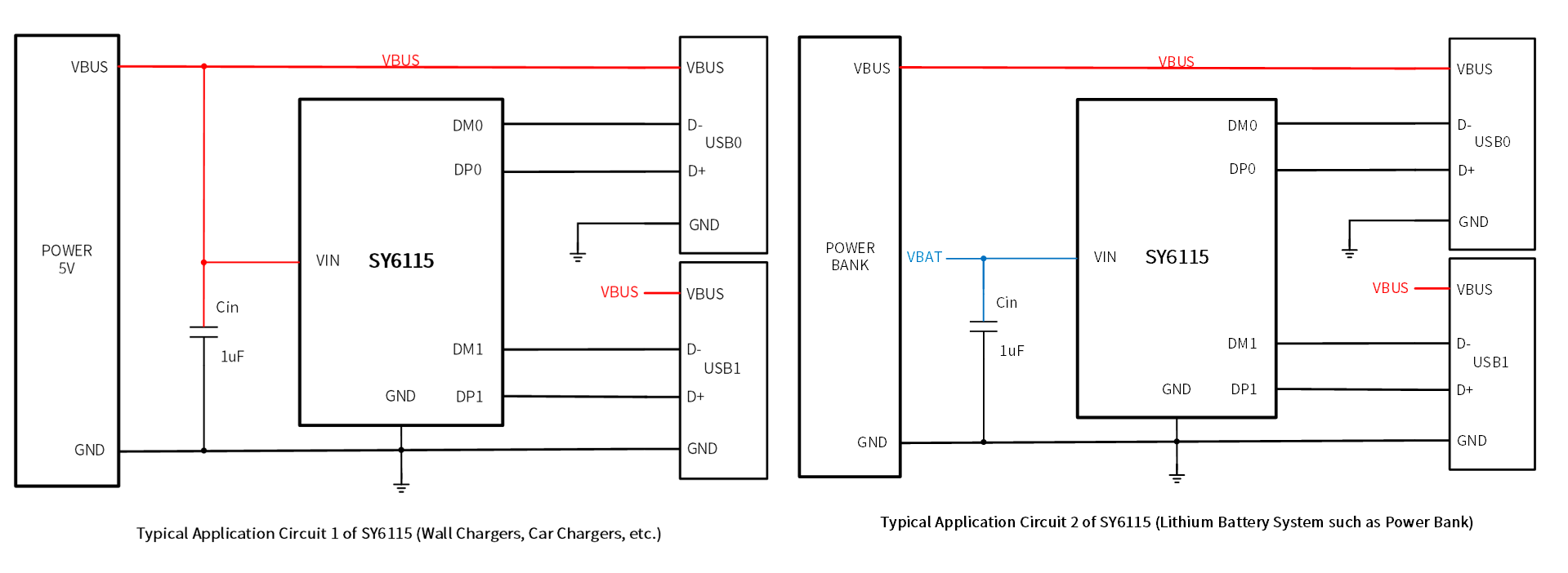 SY6115 is a dual-channel USB charging protocol port controller IC which supports automatic identification of chargers (including iphoness, Samsung and other mobiles phoness) and handshaking with devices through the corresponding USB charging protocol, for achieving maximum charging current and saving charging time on the premise of protecting chargers.