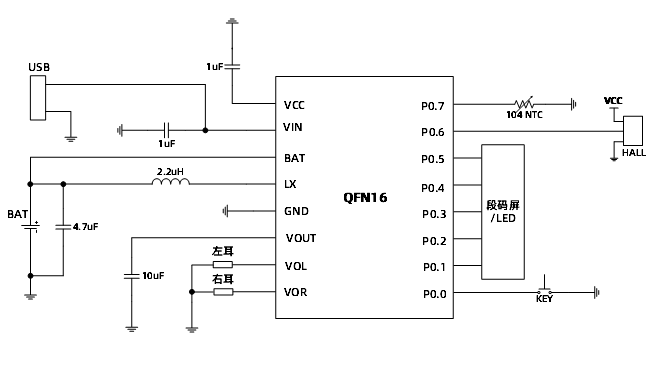 SY8839是专门为TWS耳机充电仓设计的全集成SoC芯片。SY8837/8/9内部集成了兼容8051指令集的CPU,512字节RAM, 12k字节OTP程序存储区,多通道10位ADC,9个GPIO,一个线性充电模块,一个Boost升压模块、两个独立放电控制MOS管和耳机双向通讯模块。SY8839芯片VIN管脚支持过压保护,最高耐压可达35V。 SY8839为QFN16 3*3封装。